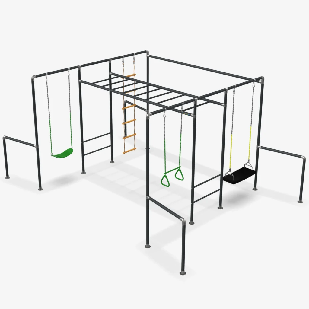 Ausgestattet mit zwei Schaukeln, einem Trapez und einer Strickleiter, bietet es zahlreiche Möglichkeiten für aktives Spiel und Bewegung.