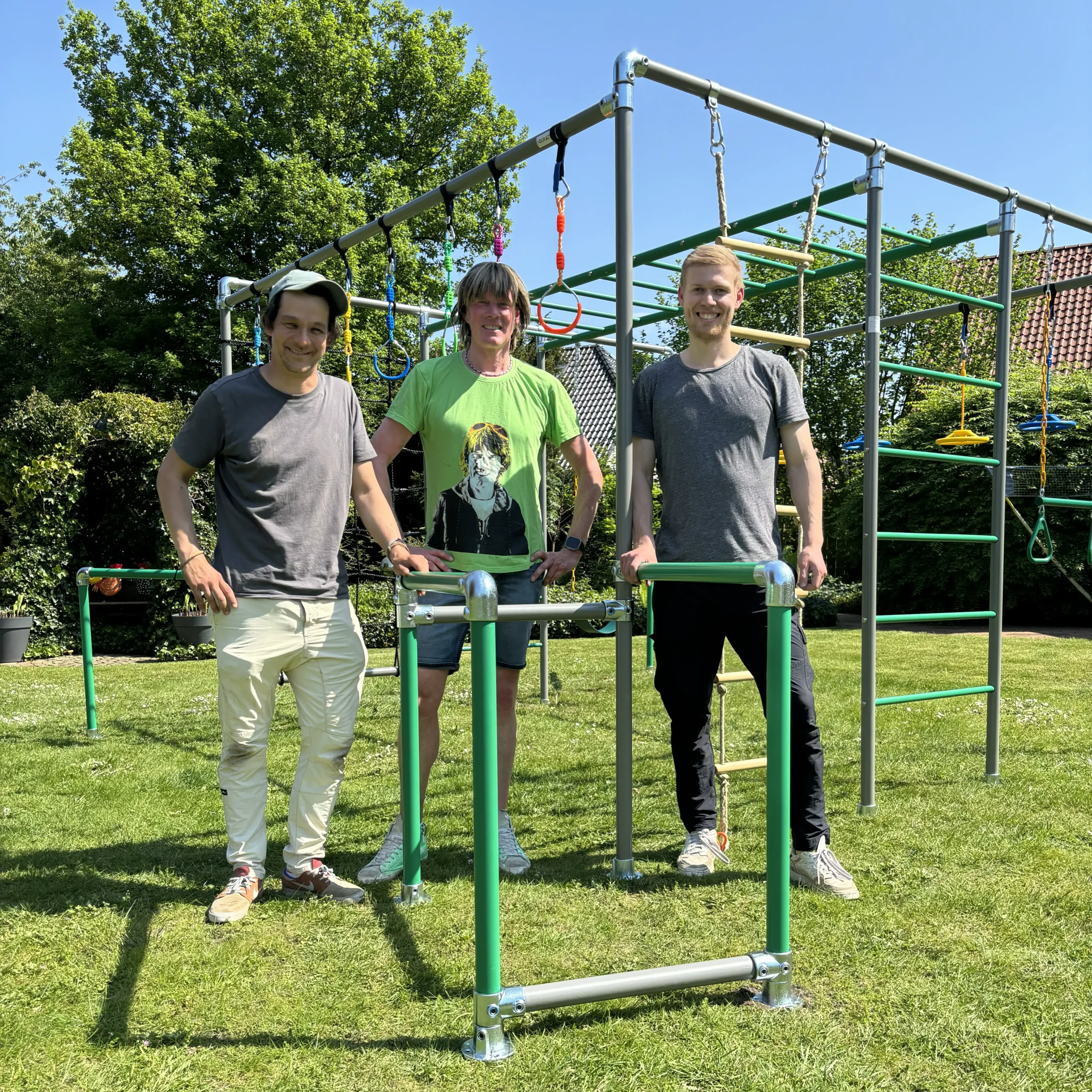 Unsere Outdoor-Klettergerüste wachsen mit den Kindern mit – vergleichbar mit einem großen Bruder, der unterstützt, fordert und motiviert. Kinder entwickeln Sicherheit in ihren Bewegungsabläufen, werden kräftiger und ausdauernder. Das Klettergerüst begleitet sie über viele Jahre hinweg: vom ersten Schaukeln im Kleinkindalter bis hin zur Nutzung als Trainingsgerät für Klimmzüge oder Workouts im Jugendalter. So bleibt das Spielgerät dauerhaft spannend und sinnvoll nutzbar.