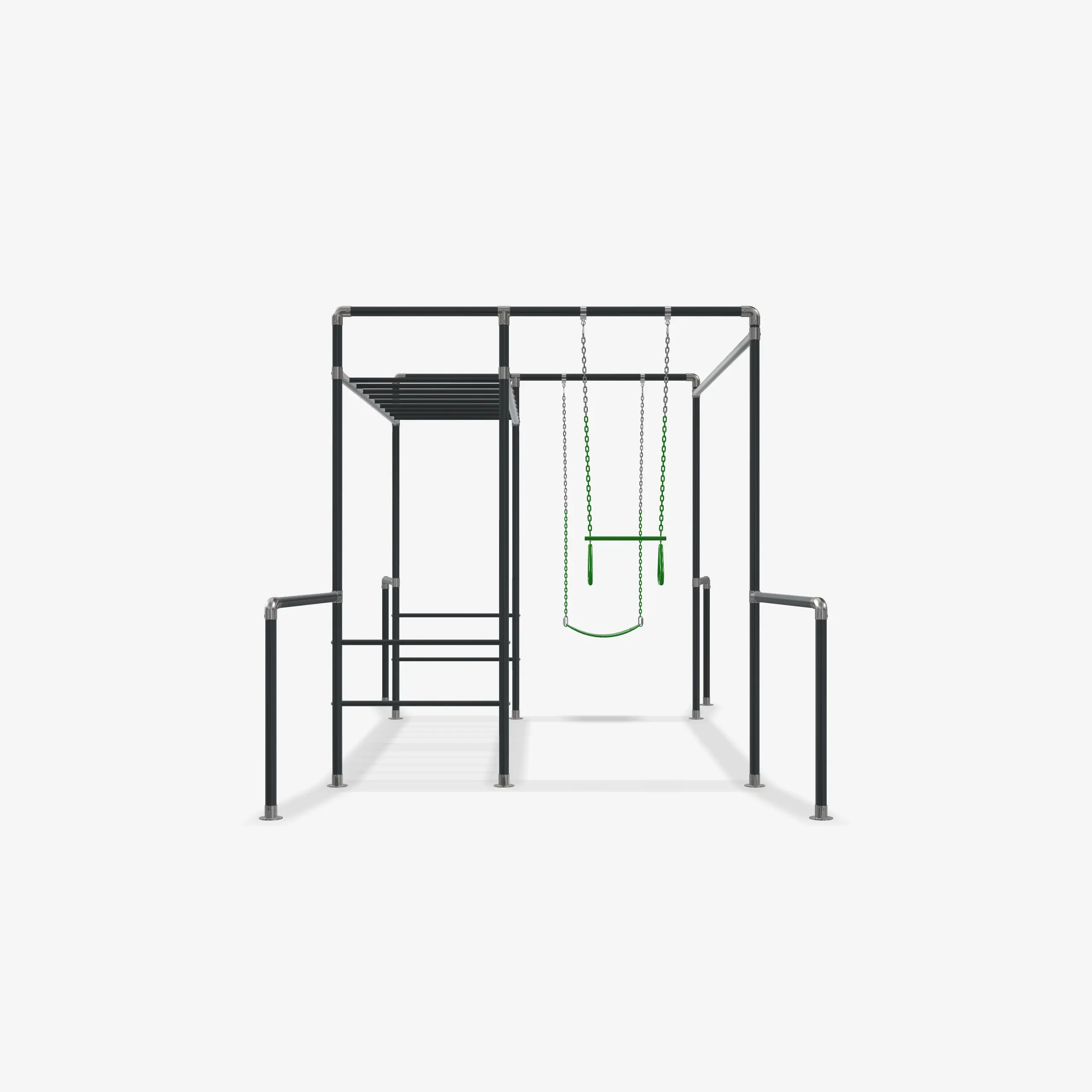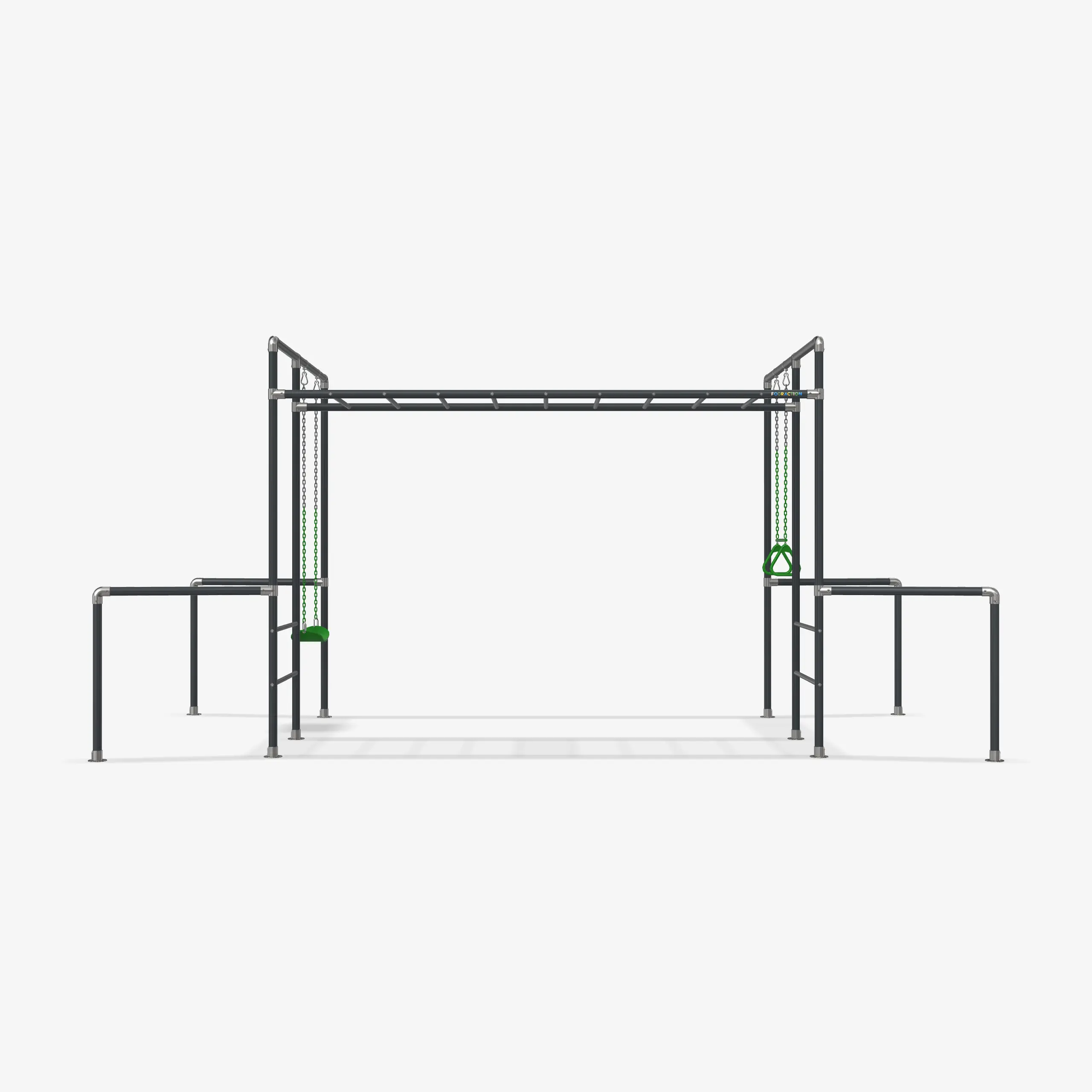 Für unsere FOURACTION Klettergerüste verwenden wir pulverbeschichtete Stahlrohre, die zusätzlich mit Zinkfarbe grundiert sind. Diese Kombination schützt zuverlässig vor Korrosion und Rost. Die verwendeten UV-beständigen, matten Farben sorgen dafür, dass das Klettergerüst auch nach Jahren noch hochwertig aussieht. Selbstverständlich sind auch die feuerverzinkten Rohrverbinder TÜV-geprüft und auf maximale Sicherheit ausgelegt.