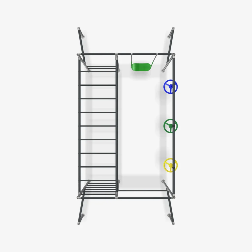 Das Little Action Klettergerüst – LINO begeistert mit einer Sprossenwand, einer Reckstange sowie drei Ninja Wheels, die zum Klettern, Hangeln und Schwingen einladen und spielerisch Kraft, Motorik und Geschicklichkeit fördern.