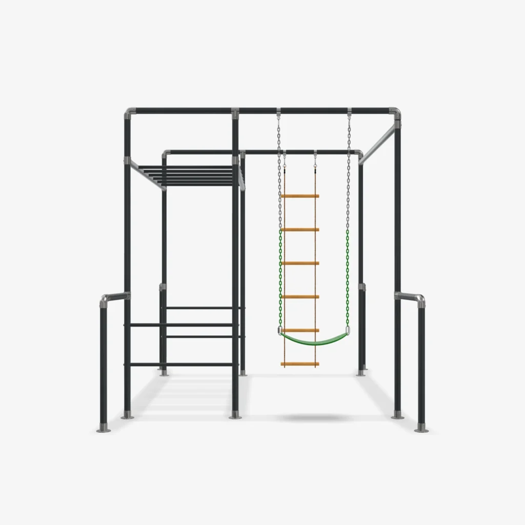 Unsere Outdoor-Klettergerüste wachsen mit den Kindern mit – vergleichbar mit einem großen Bruder, der unterstützt, fordert und motiviert. Kinder entwickeln Sicherheit in ihren Bewegungsabläufen, werden kräftiger und ausdauernder. Das Klettergerüst begleitet sie über viele Jahre hinweg: vom ersten Schaukeln im Kleinkindalter bis hin zur Nutzung als Trainingsgerät für Klimmzüge oder Workouts im Jugendalter. So bleibt das Spielgerät dauerhaft spannend und sinnvoll nutzbar.
